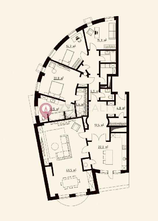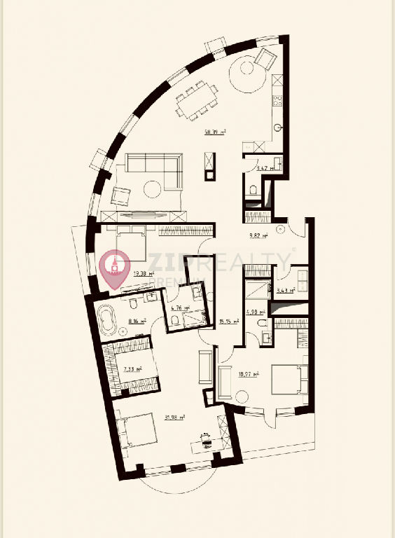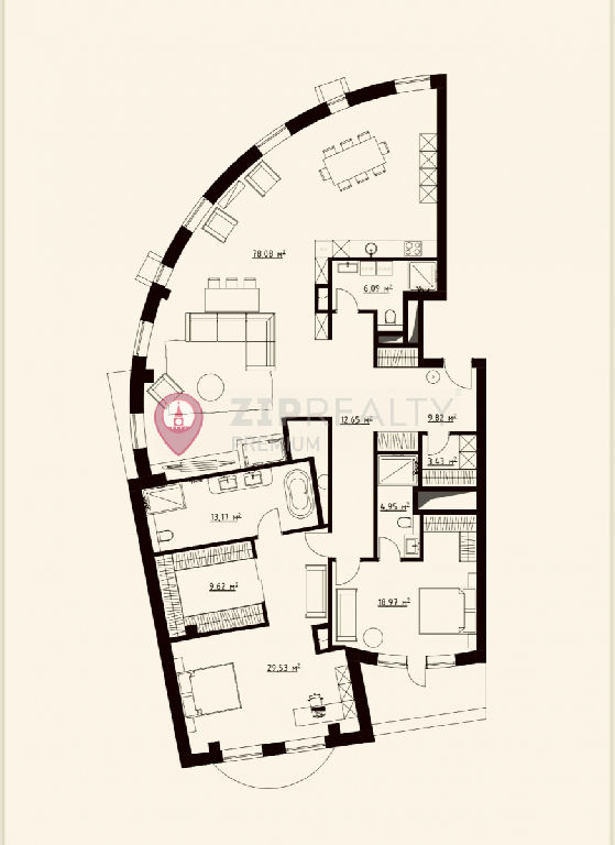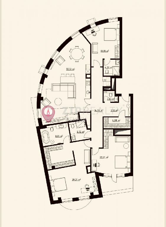 В ЖК "Патриарх" на первом этаже располагается зона СПА с бассейном, тренажерным залом и комнатами отдыха и баром, где комфортно и безопасно провести время с семьей или друзьями. На -1 уровне находится парковка, 1 машиноместо входит в стоимость квартиры. В разделе планировки мы указали возможные варианты планировочных решений в данной квартире.